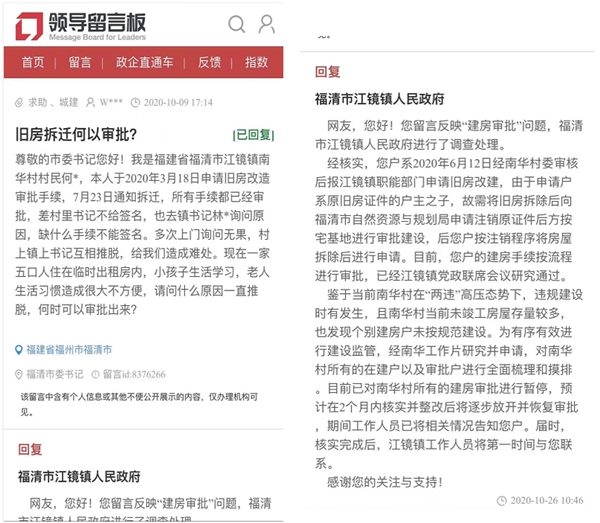 开展农房改善工作,能够提高农村农民居住质量。一直以来,房子是中国人的头等大事,“居者有其屋”是人们的朴素愿望。何武一家身陷旧房拆除新房遥遥无期的困境,诚恳请福清市政府、江镜镇及南华村等有部门调查落实,希望有关部门能及时核发建房许可证,让何武一家能早日动工并建设好住宅。
